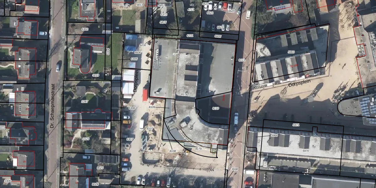 Het perceel waarop Dorpsplein 80 staat heeft een oppervlakte van 1839 m². Dit is een zeer groot perceel. De perceeloppervlakte wordt geregistreerd door het Kadaster. Gedetailleerde informatie over de maten van dit perceel kunt u vinden in het rapport Kadastrale kaart met maatvoering van Dorpsplein 80.