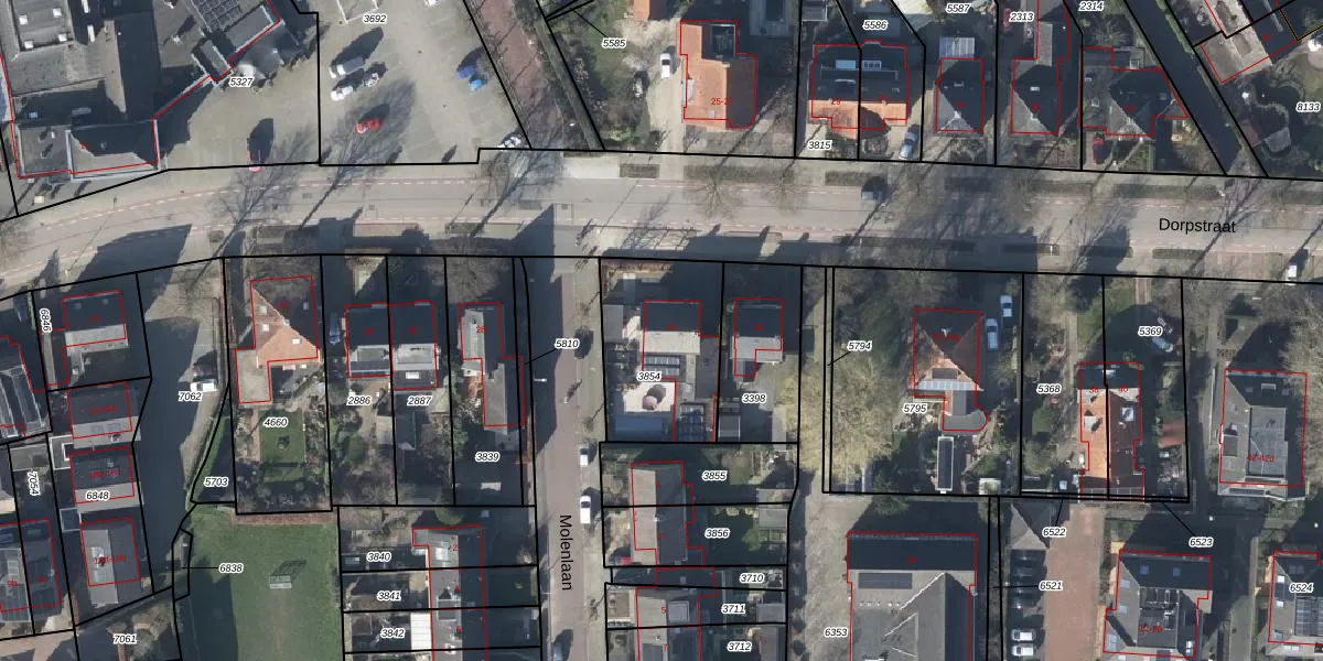 Het perceel waarop Dorpstraat 30 staat heeft een oppervlakte van 495 m². Dit is een groot perceel. De perceeloppervlakte wordt geregistreerd door het Kadaster. Gedetailleerde informatie over de maten van dit perceel kunt u vinden in het rapport Kadastrale kaart met maatvoering van Dorpstraat 30.