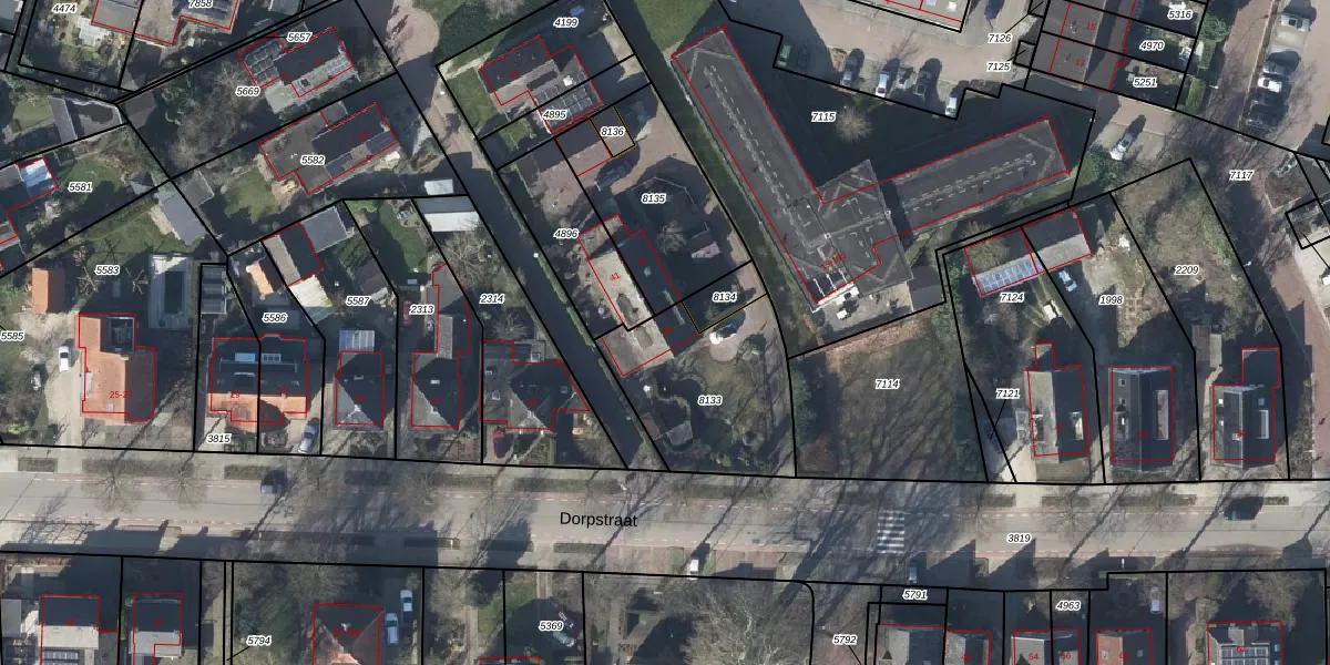 Het perceel waarop Dorpstraat 39 staat heeft een oppervlakte van 582 m². Dit is een groot perceel. De perceeloppervlakte wordt geregistreerd door het Kadaster. Gedetailleerde informatie over de maten van dit perceel kunt u vinden in het rapport Kadastrale kaart met maatvoering van Dorpstraat 39.