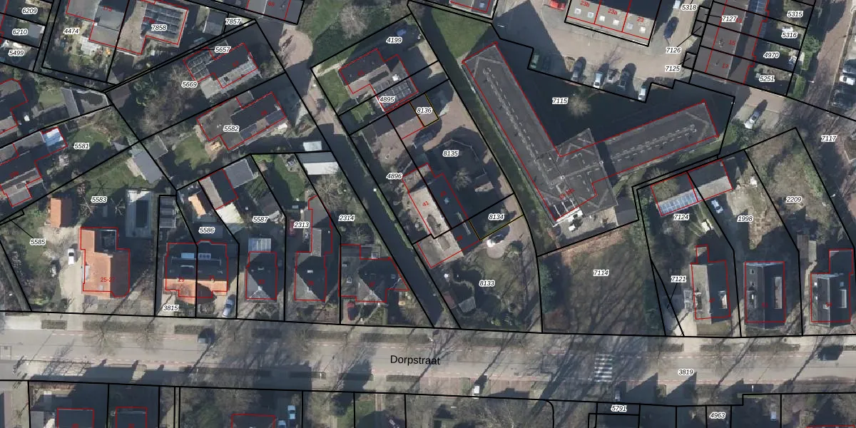 Het perceel waarop Dorpstraat 41 staat heeft een oppervlakte van 303 m². Dit is een groot perceel. De perceeloppervlakte wordt geregistreerd door het Kadaster. Gedetailleerde informatie over de maten van dit perceel kunt u vinden in het rapport Kadastrale kaart met maatvoering van Dorpstraat 41.