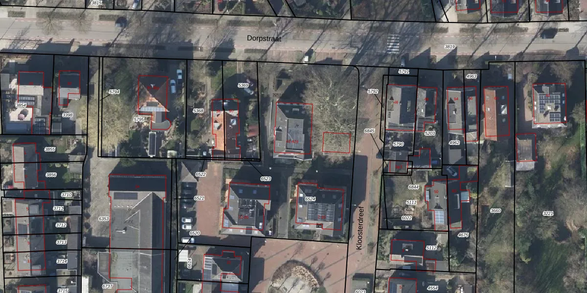 Het perceel waarop Dorpstraat 42 staat heeft een oppervlakte van 2690 m². Dit is een zeer groot perceel. De perceeloppervlakte wordt geregistreerd door het Kadaster. Gedetailleerde informatie over de maten van dit perceel kunt u vinden in het rapport Kadastrale kaart met maatvoering van Dorpstraat 42.