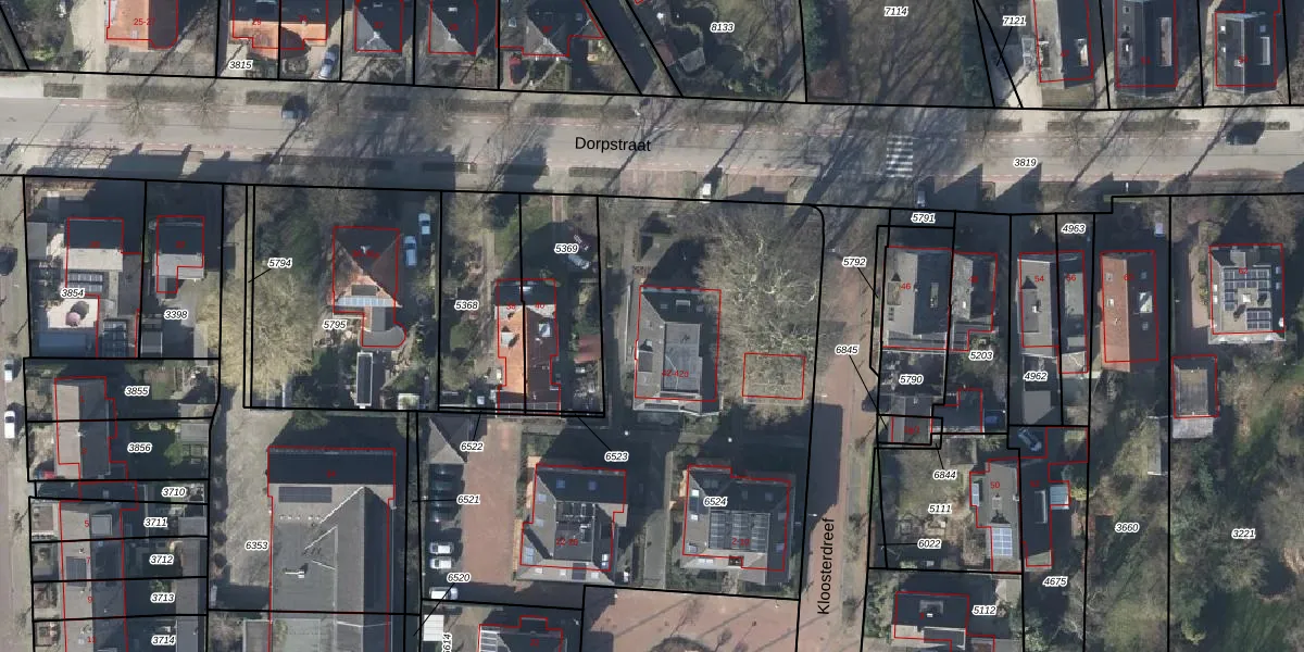 Het perceel waarop Dorpstraat 42-b staat heeft een oppervlakte van 2690 m². Dit is een zeer groot perceel. De perceeloppervlakte wordt geregistreerd door het Kadaster. Gedetailleerde informatie over de maten van dit perceel kunt u vinden in het rapport Kadastrale kaart met maatvoering van Dorpstraat 42-b.