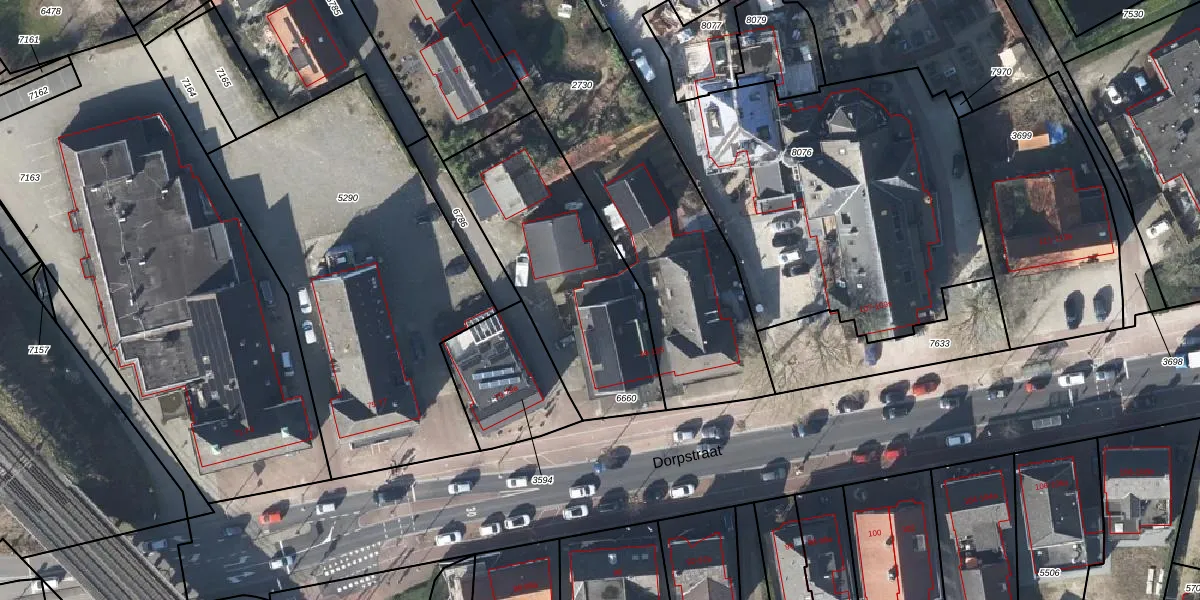 Het perceel waarop Dorpstraat 99-b staat heeft een oppervlakte van 894 m². Dit is een groot perceel. De perceeloppervlakte wordt geregistreerd door het Kadaster. Gedetailleerde informatie over de maten van dit perceel kunt u vinden in het rapport Kadastrale kaart met maatvoering van Dorpstraat 99-b.