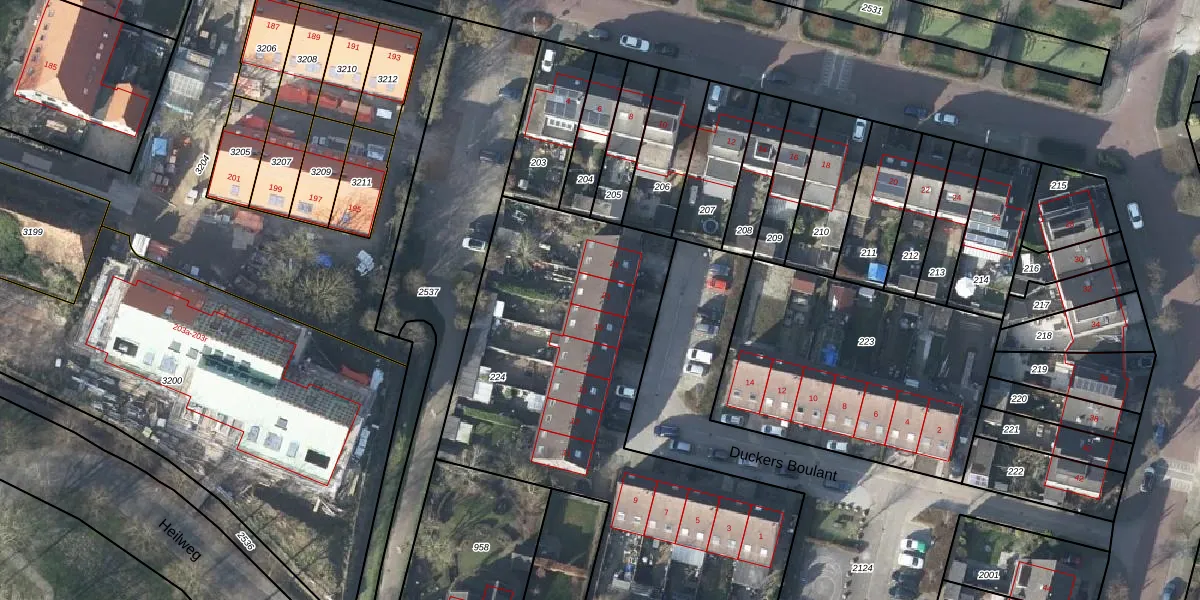 Het perceel waarop Duckers Boulant 21 staat heeft een oppervlakte van 2198 m². Dit is een zeer groot perceel. De perceeloppervlakte wordt geregistreerd door het Kadaster. Gedetailleerde informatie over de maten van dit perceel kunt u vinden in het rapport Kadastrale kaart met maatvoering van Duckers Boulant 21.