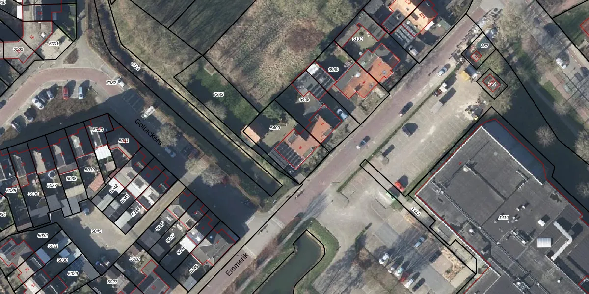 Het perceel waarop Emmerik 8 staat heeft een oppervlakte van 400 m². Dit is een groot perceel. De perceeloppervlakte wordt geregistreerd door het Kadaster. Gedetailleerde informatie over de maten van dit perceel kunt u vinden in het rapport Kadastrale kaart met maatvoering van Emmerik 8.