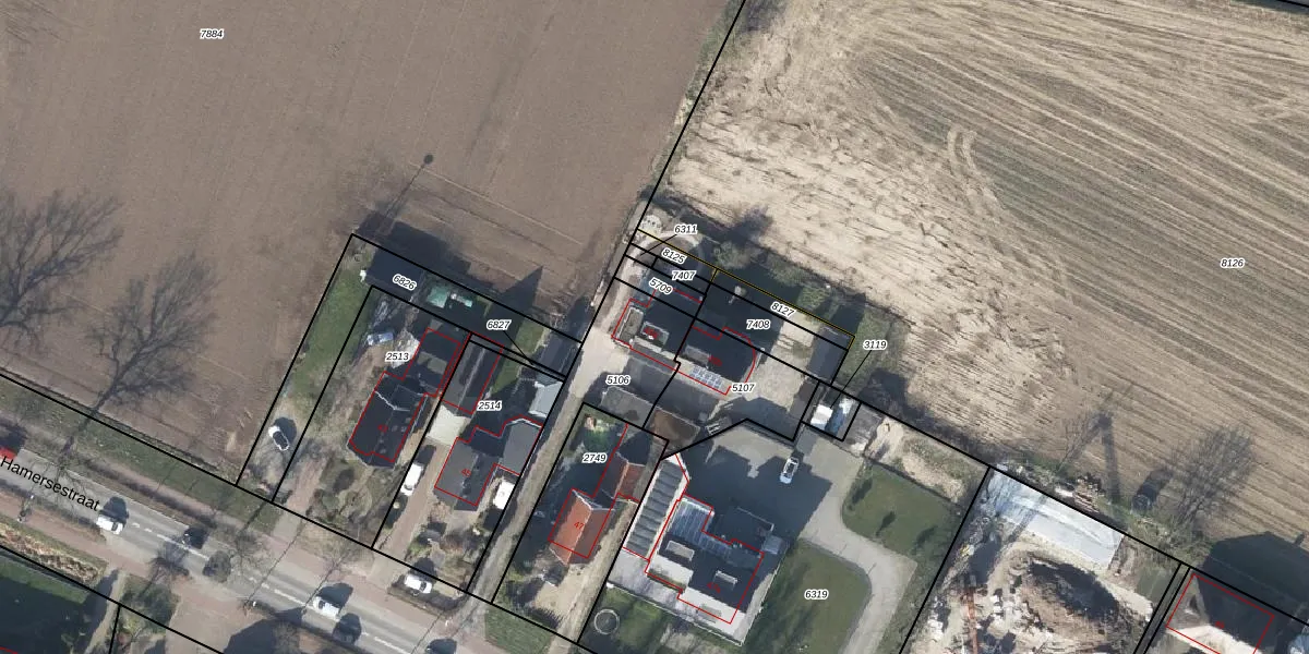 Het perceel waarop Hamersestraat 45-a staat heeft een oppervlakte van 400 m². Dit is een groot perceel. De perceeloppervlakte wordt geregistreerd door het Kadaster. Gedetailleerde informatie over de maten van dit perceel kunt u vinden in het rapport Kadastrale kaart met maatvoering van Hamersestraat 45-a.