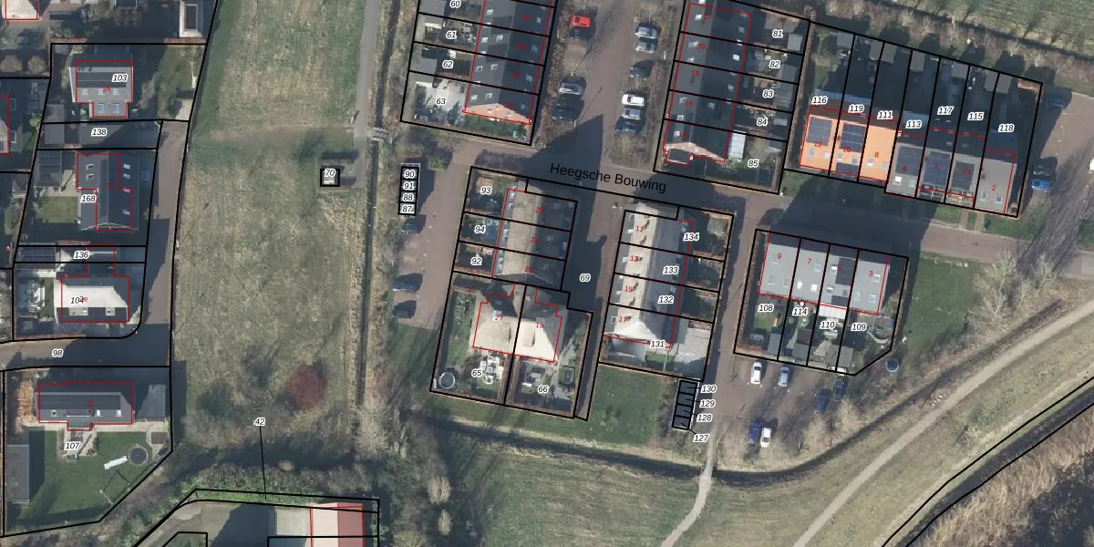 Het perceel waarop Heegsche Bouwing 21 staat heeft een oppervlakte van 113 m². Dit is een middelgroot perceel. De perceeloppervlakte wordt geregistreerd door het Kadaster. Gedetailleerde informatie over de maten van dit perceel kunt u vinden in het rapport Kadastrale kaart met maatvoering van Heegsche Bouwing 21.