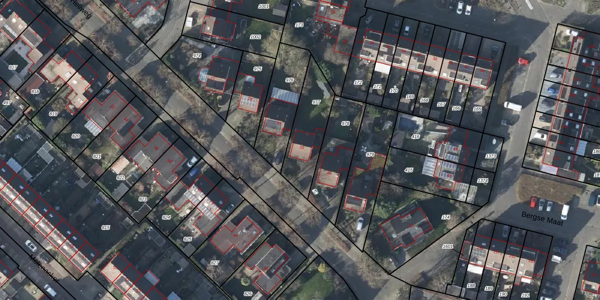 Het perceel waarop Heilweg 33 staat heeft een oppervlakte van 427 m². Dit is een groot perceel. De perceeloppervlakte wordt geregistreerd door het Kadaster. Gedetailleerde informatie over de maten van dit perceel kunt u vinden in het rapport Kadastrale kaart met maatvoering van Heilweg 33.