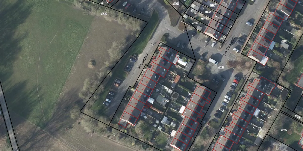 Het perceel waarop Hessepas 33 staat heeft een oppervlakte van 3045 m². Dit is een zeer groot perceel. De perceeloppervlakte wordt geregistreerd door het Kadaster. Gedetailleerde informatie over de maten van dit perceel kunt u vinden in het rapport Kadastrale kaart met maatvoering van Hessepas 33.