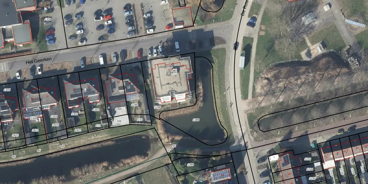 Het Geerken 15 is gelegen op kadastraal perceel WTV00B1298. Deze kadastrale aanduiding is uniek en wordt gebruikt door het Kadaster om eigendomsrechten en andere zakelijke rechten vast te leggen. Het perceel maakt onderdeel uit van de kadastrale gemeente Westervoort.