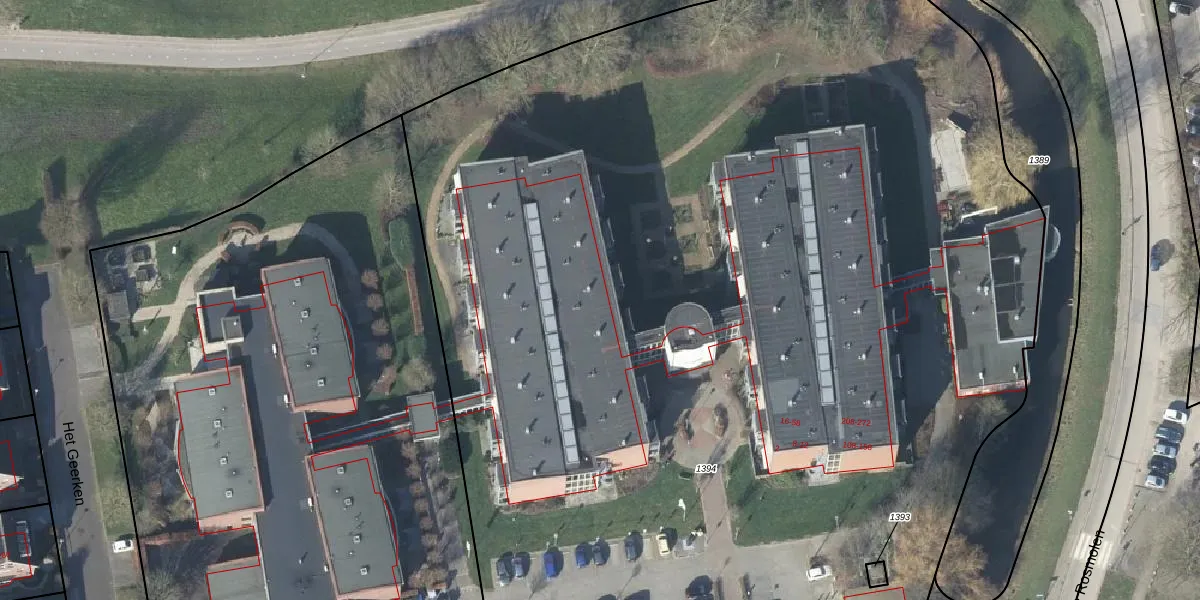 Het perceel waarop Het Geerken 40 staat heeft een oppervlakte van 1,0 ha. Dit is een zeer groot perceel. De perceeloppervlakte wordt geregistreerd door het Kadaster. Gedetailleerde informatie over de maten van dit perceel kunt u vinden in het rapport Kadastrale kaart met maatvoering van Het Geerken 40.