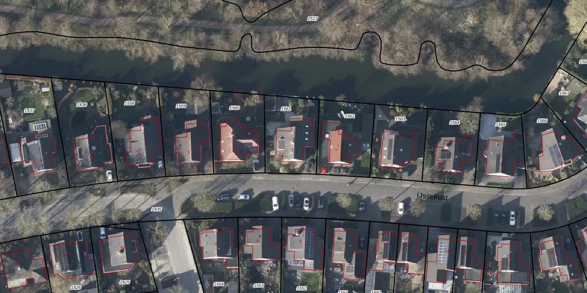 Het perceel waarop IJsselrust 5 staat heeft een oppervlakte van 472 m². Dit is een groot perceel. De perceeloppervlakte wordt geregistreerd door het Kadaster. Gedetailleerde informatie over de maten van dit perceel kunt u vinden in het rapport Kadastrale kaart met maatvoering van IJsselrust 5.