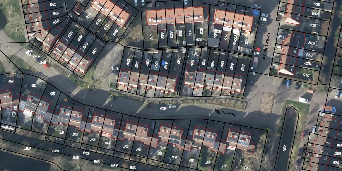 Het perceel waarop Jagerskamp 57 staat heeft een oppervlakte van 226 m². Dit is een middelgroot perceel. De perceeloppervlakte wordt geregistreerd door het Kadaster. Gedetailleerde informatie over de maten van dit perceel kunt u vinden in het rapport Kadastrale kaart met maatvoering van Jagerskamp 57.