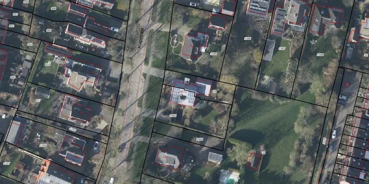 Klapstraat 175 is gelegen op kadastraal perceel WTV00C2465. Deze kadastrale aanduiding is uniek en wordt gebruikt door het Kadaster om eigendomsrechten en andere zakelijke rechten vast te leggen. Het perceel maakt onderdeel uit van de kadastrale gemeente Westervoort.