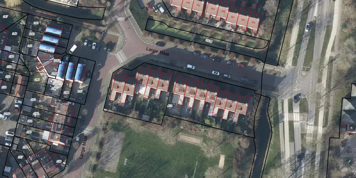Het perceel waarop Lange Maat 150 staat heeft een oppervlakte van 2280 m². Dit is een zeer groot perceel. De perceeloppervlakte wordt geregistreerd door het Kadaster. Gedetailleerde informatie over de maten van dit perceel kunt u vinden in het rapport Kadastrale kaart met maatvoering van Lange Maat 150.