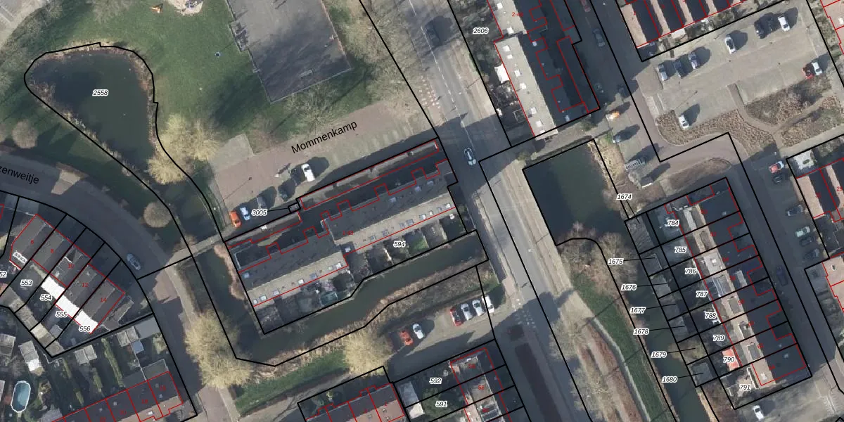 Het perceel waarop Mommenkamp 25 staat heeft een oppervlakte van 1322 m². Dit is een zeer groot perceel. De perceeloppervlakte wordt geregistreerd door het Kadaster. Gedetailleerde informatie over de maten van dit perceel kunt u vinden in het rapport Kadastrale kaart met maatvoering van Mommenkamp 25.