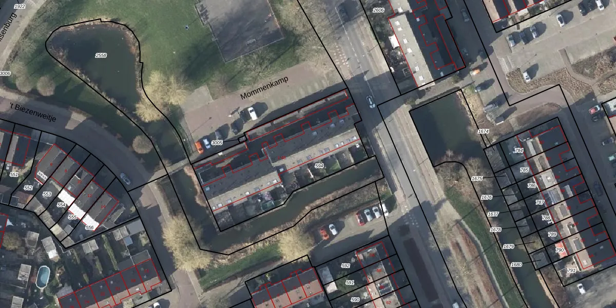 Het perceel waarop Mommenkamp 29 staat heeft een oppervlakte van 1322 m². Dit is een zeer groot perceel. De perceeloppervlakte wordt geregistreerd door het Kadaster. Gedetailleerde informatie over de maten van dit perceel kunt u vinden in het rapport Kadastrale kaart met maatvoering van Mommenkamp 29.