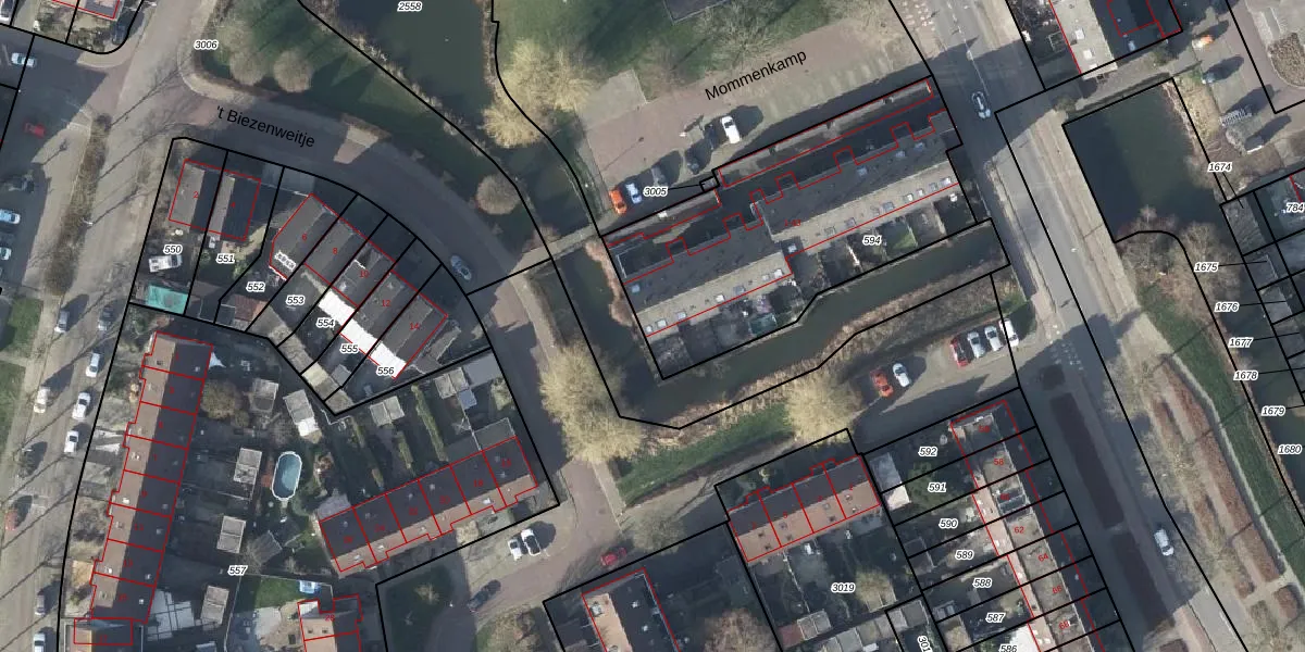 Het perceel waarop Mommenkamp 43 staat heeft een oppervlakte van 1322 m². Dit is een zeer groot perceel. De perceeloppervlakte wordt geregistreerd door het Kadaster. Gedetailleerde informatie over de maten van dit perceel kunt u vinden in het rapport Kadastrale kaart met maatvoering van Mommenkamp 43.