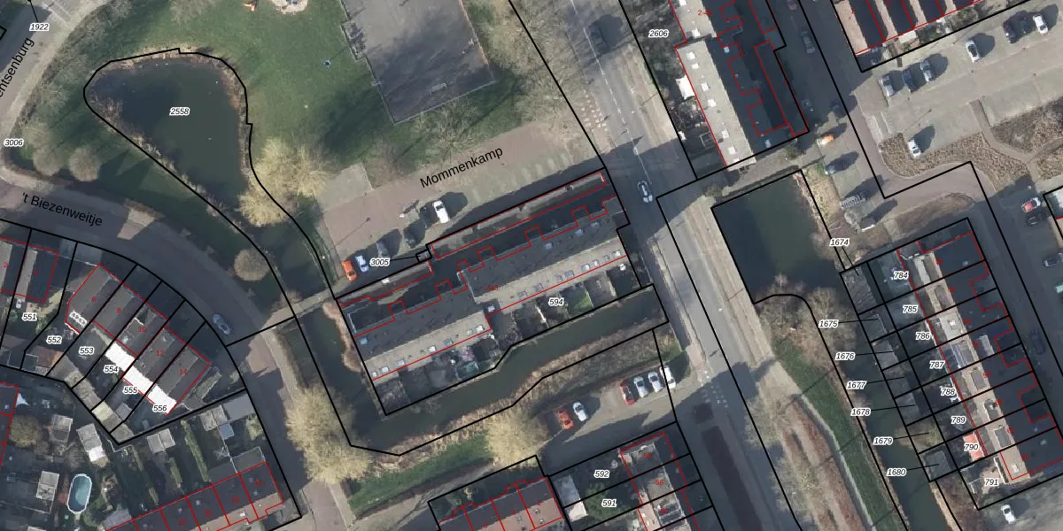 Het perceel waarop Mommenkamp 7 staat heeft een oppervlakte van 1322 m². Dit is een zeer groot perceel. De perceeloppervlakte wordt geregistreerd door het Kadaster. Gedetailleerde informatie over de maten van dit perceel kunt u vinden in het rapport Kadastrale kaart met maatvoering van Mommenkamp 7.