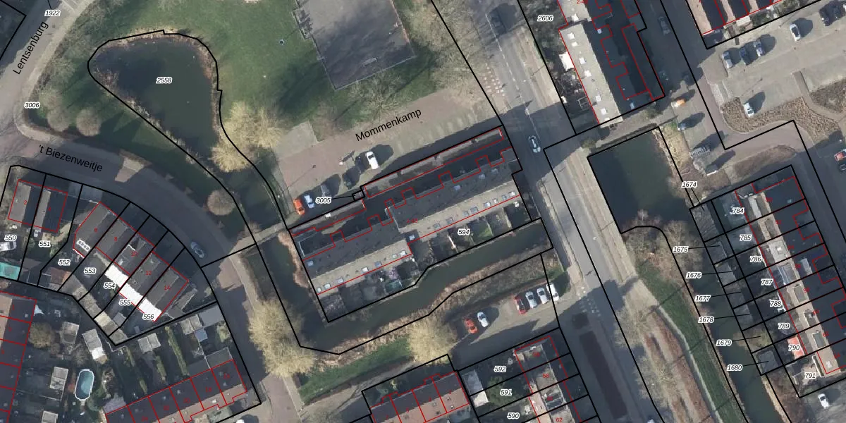Het perceel waarop Mommenkamp 9 staat heeft een oppervlakte van 1322 m². Dit is een zeer groot perceel. De perceeloppervlakte wordt geregistreerd door het Kadaster. Gedetailleerde informatie over de maten van dit perceel kunt u vinden in het rapport Kadastrale kaart met maatvoering van Mommenkamp 9.