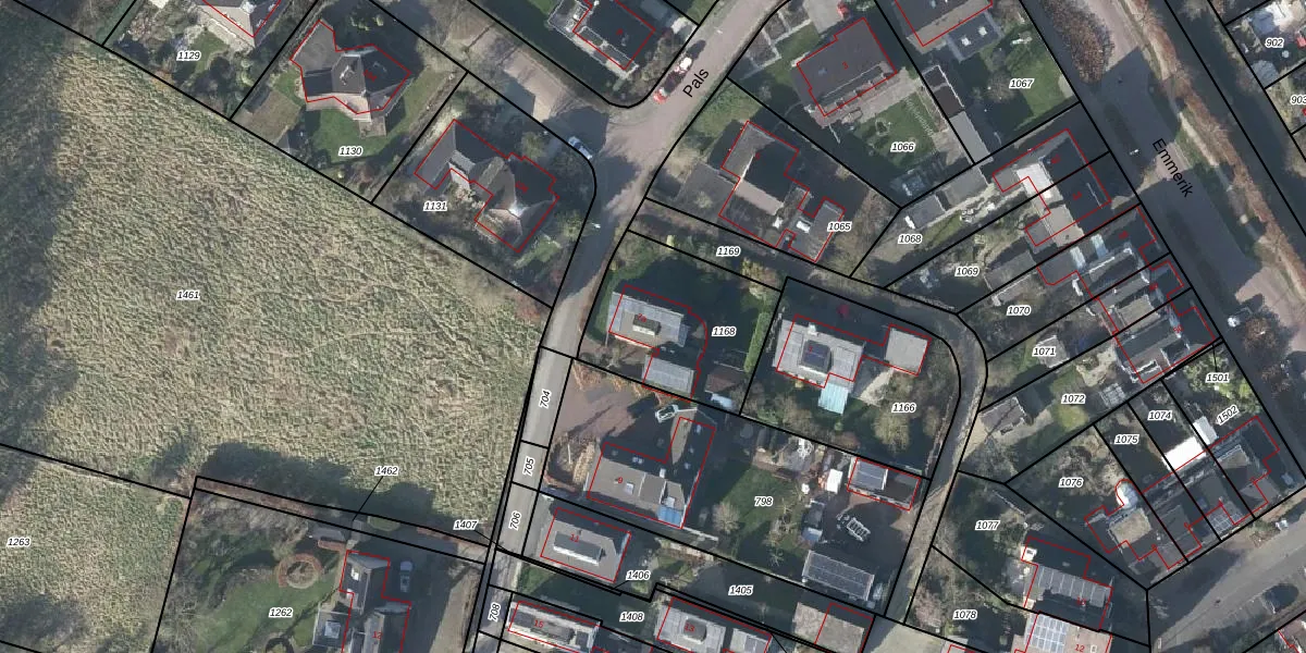Het perceel waarop Pals 7-a staat heeft een oppervlakte van 555 m². Dit is een groot perceel. De perceeloppervlakte wordt geregistreerd door het Kadaster. Gedetailleerde informatie over de maten van dit perceel kunt u vinden in het rapport Kadastrale kaart met maatvoering van Pals 7-a.