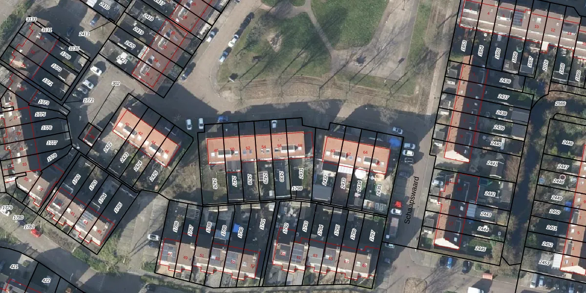 Het perceel waarop Schaapswaard 58 staat heeft een oppervlakte van 228 m². Dit is een middelgroot perceel. De perceeloppervlakte wordt geregistreerd door het Kadaster. Gedetailleerde informatie over de maten van dit perceel kunt u vinden in het rapport Kadastrale kaart met maatvoering van Schaapswaard 58.
