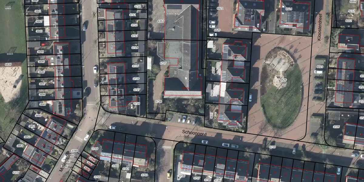 Het perceel waarop Schoonoord 30 staat heeft een oppervlakte van 1256 m². Dit is een zeer groot perceel. De perceeloppervlakte wordt geregistreerd door het Kadaster. Gedetailleerde informatie over de maten van dit perceel kunt u vinden in het rapport Kadastrale kaart met maatvoering van Schoonoord 30.