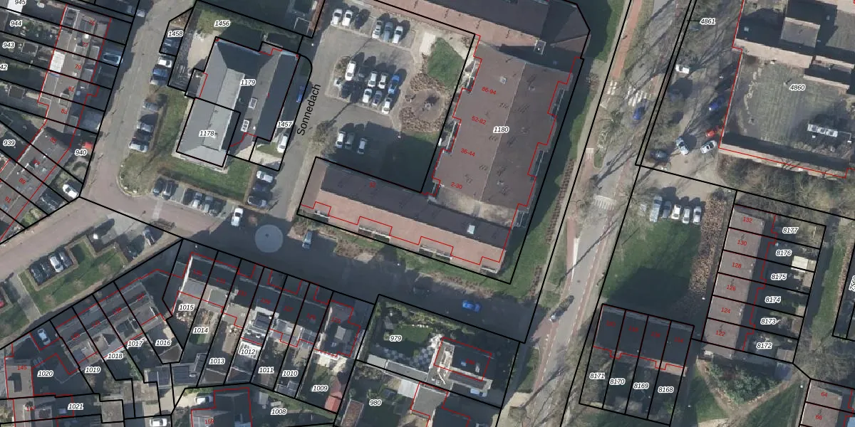 Het perceel waarop Sonnedach 58 staat heeft een oppervlakte van 2550 m². Dit is een zeer groot perceel. De perceeloppervlakte wordt geregistreerd door het Kadaster. Gedetailleerde informatie over de maten van dit perceel kunt u vinden in het rapport Kadastrale kaart met maatvoering van Sonnedach 58.