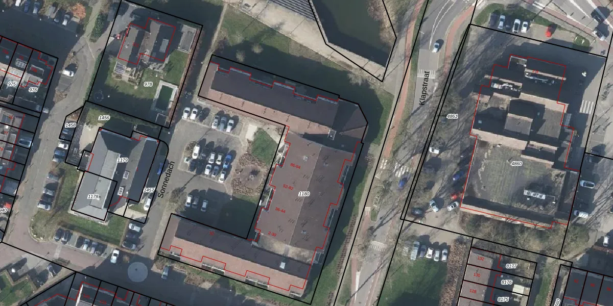 Het perceel waarop Sonnedach 82 staat heeft een oppervlakte van 2550 m². Dit is een zeer groot perceel. De perceeloppervlakte wordt geregistreerd door het Kadaster. Gedetailleerde informatie over de maten van dit perceel kunt u vinden in het rapport Kadastrale kaart met maatvoering van Sonnedach 82.