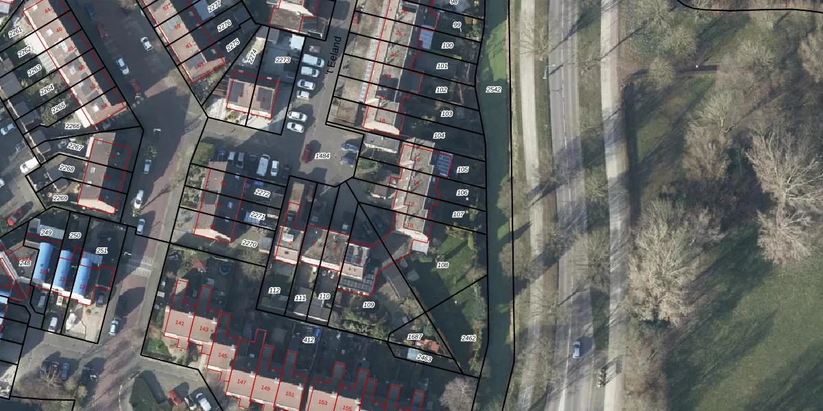 Gebruik de zoekbalk of klik op een perceel voor informatie over de adressen binnen dit perceel.