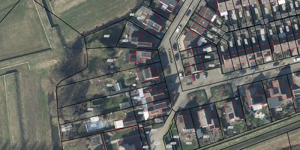 Het perceel waarop 't Kleefse 39 staat heeft een oppervlakte van 1015 m². Dit is een zeer groot perceel. De perceeloppervlakte wordt geregistreerd door het Kadaster. Gedetailleerde informatie over de maten van dit perceel kunt u vinden in het rapport Kadastrale kaart met maatvoering van 't Kleefse 39.