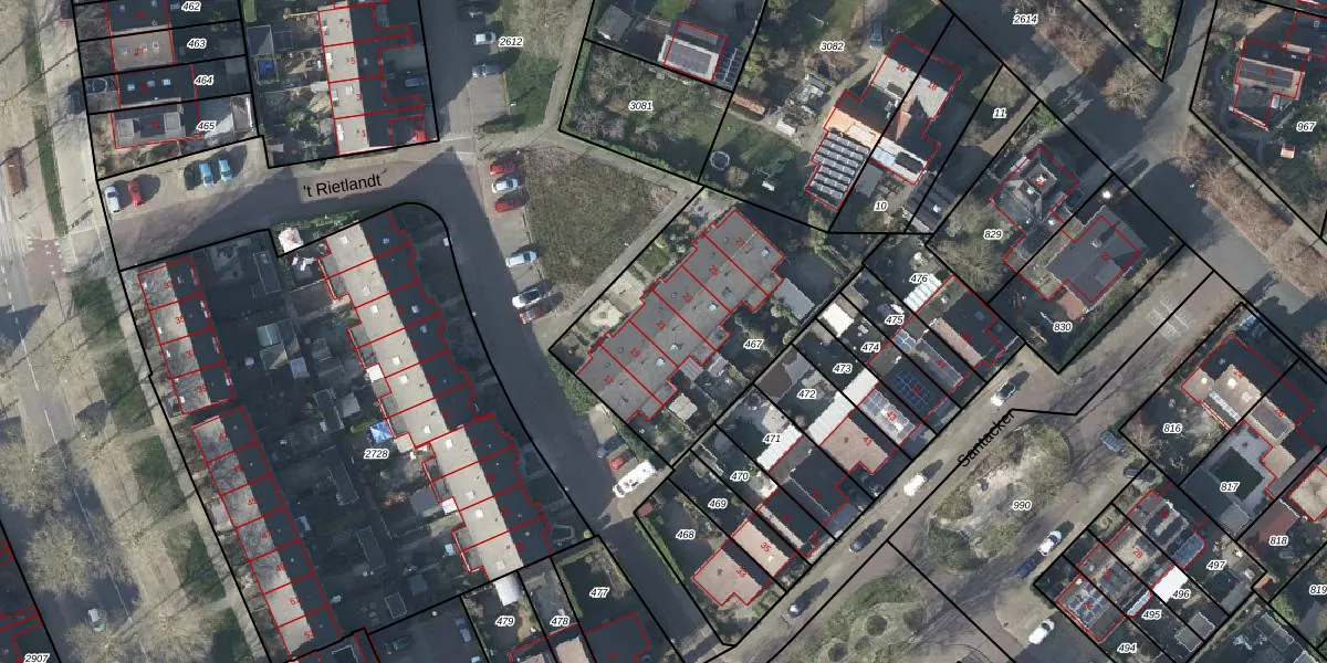 Het perceel waarop 't Rietlandt 21 staat heeft een oppervlakte van 1027 m². Dit is een zeer groot perceel. De perceeloppervlakte wordt geregistreerd door het Kadaster. Gedetailleerde informatie over de maten van dit perceel kunt u vinden in het rapport Kadastrale kaart met maatvoering van 't Rietlandt 21.