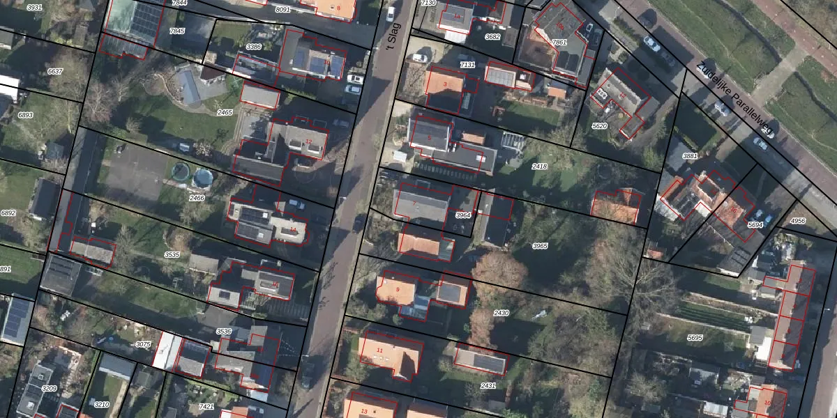 Gebruik de zoekbalk of klik op een perceel voor informatie over de adressen binnen dit perceel.