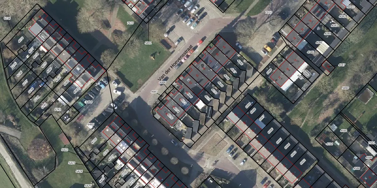 Van der Hoevensstraat 55 is gelegen op kadastraal perceel WTV00A4985. Deze kadastrale aanduiding is uniek en wordt gebruikt door het Kadaster om eigendomsrechten en andere zakelijke rechten vast te leggen. Het perceel maakt onderdeel uit van de kadastrale gemeente Westervoort.