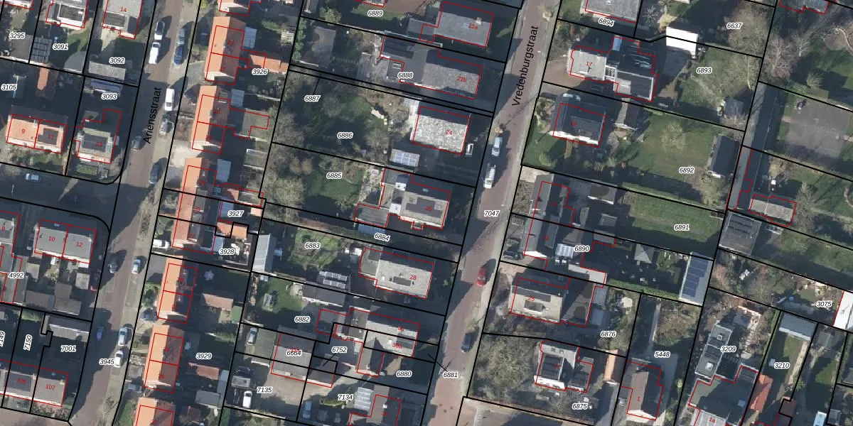 Het perceel waarop Vredenburgstraat 26 staat heeft een oppervlakte van 685 m². Dit is een groot perceel. De perceeloppervlakte wordt geregistreerd door het Kadaster. Gedetailleerde informatie over de maten van dit perceel kunt u vinden in het rapport Kadastrale kaart met maatvoering van Vredenburgstraat 26.