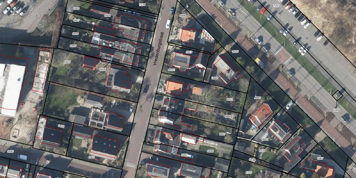 Het perceel waarop Vredenburgstraat 5 staat heeft een oppervlakte van 606 m². Dit is een groot perceel. De perceeloppervlakte wordt geregistreerd door het Kadaster. Gedetailleerde informatie over de maten van dit perceel kunt u vinden in het rapport Kadastrale kaart met maatvoering van Vredenburgstraat 5.