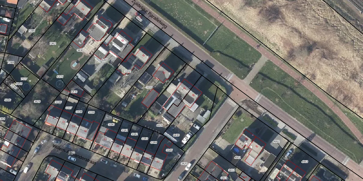 Het perceel waarop Zuidelijke Parallelweg 34 staat heeft een oppervlakte van 466 m². Dit is een groot perceel. De perceeloppervlakte wordt geregistreerd door het Kadaster. Gedetailleerde informatie over de maten van dit perceel kunt u vinden in het rapport Kadastrale kaart met maatvoering van Zuidelijke Parallelweg 34.