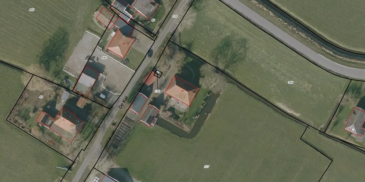 Het perceel waarop De Kat 10 staat heeft een oppervlakte van 1,0 ha. Dit is een zeer groot perceel. De perceeloppervlakte wordt geregistreerd door het Kadaster. Gedetailleerde informatie over de maten van dit perceel kunt u vinden in het rapport Kadastrale kaart met maatvoering van De Kat 10.