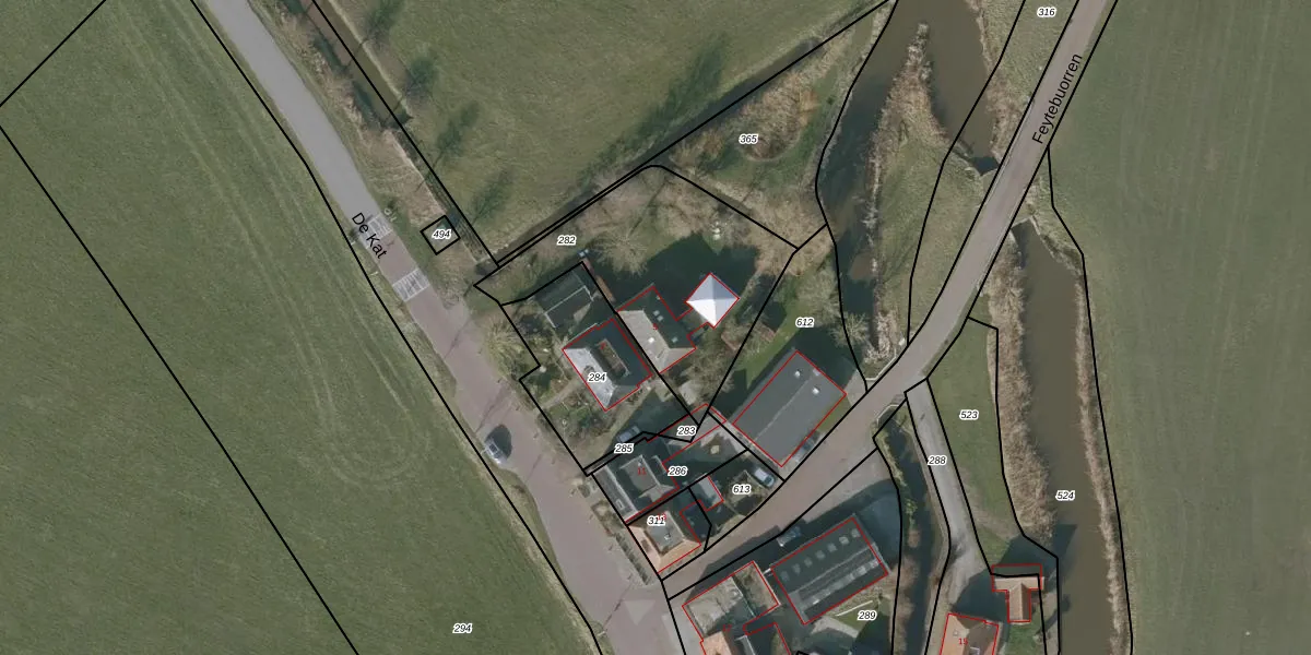 Het perceel waarop De Kat 5 staat heeft een oppervlakte van 825 m². Dit is een groot perceel. De perceeloppervlakte wordt geregistreerd door het Kadaster. Gedetailleerde informatie over de maten van dit perceel kunt u vinden in het rapport Kadastrale kaart met maatvoering van De Kat 5.