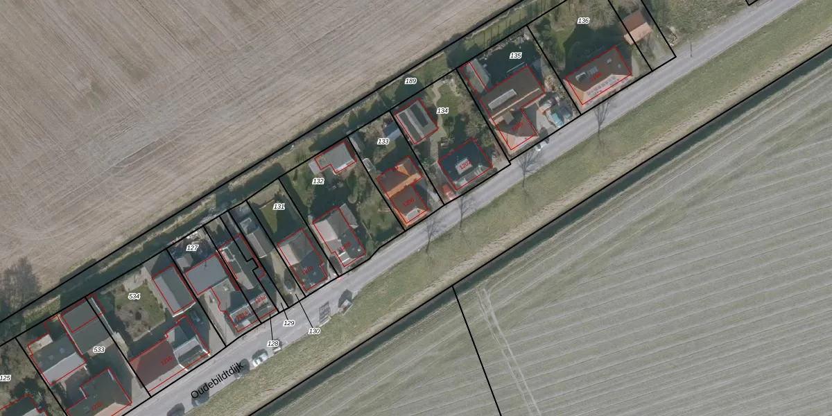 Het perceel waarop Oudebildtdijk 1206 staat heeft een oppervlakte van 315 m². Dit is een groot perceel. De perceeloppervlakte wordt geregistreerd door het Kadaster. Gedetailleerde informatie over de maten van dit perceel kunt u vinden in het rapport Kadastrale kaart met maatvoering van Oudebildtdijk 1206.