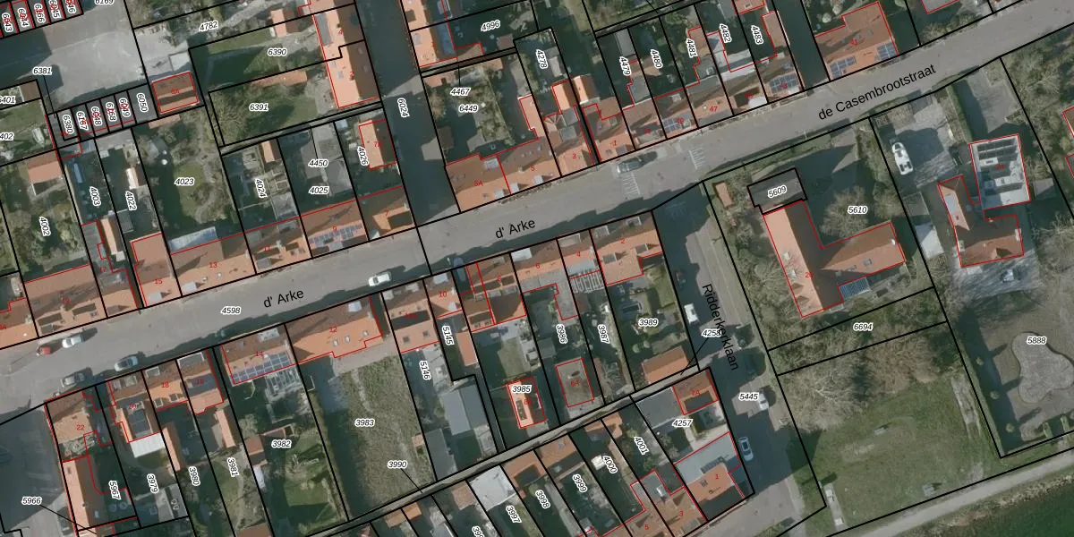 d' Arke 6 is gelegen op kadastraal perceel WKP00B3986. Deze kadastrale aanduiding is uniek en wordt gebruikt door het Kadaster om eigendomsrechten en andere zakelijke rechten vast te leggen. Het perceel maakt onderdeel uit van de kadastrale gemeente Westkapelle.