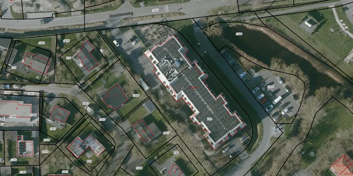 Het perceel waarop Joossesweg 35-A-39 staat heeft een oppervlakte van 3370 m². Dit is een zeer groot perceel. De perceeloppervlakte wordt geregistreerd door het Kadaster. Gedetailleerde informatie over de maten van dit perceel kunt u vinden in het rapport Kadastrale kaart met maatvoering van Joossesweg 35-A-39.
