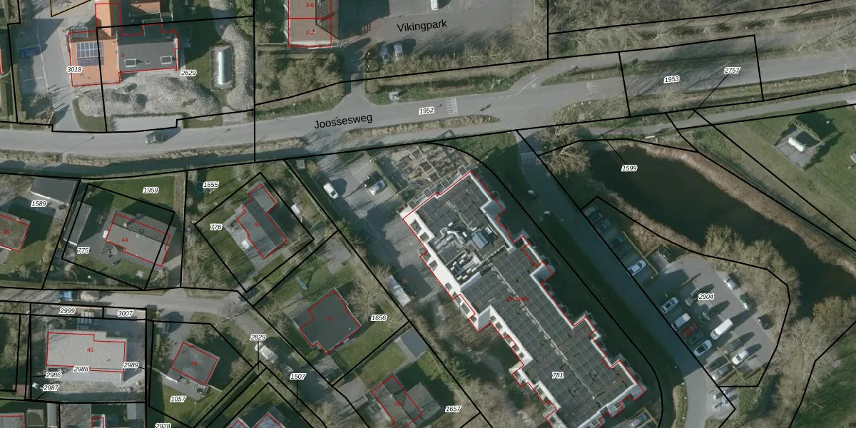 Het perceel waarop Joossesweg 35-A-42 staat heeft een oppervlakte van 3370 m². Dit is een zeer groot perceel. De perceeloppervlakte wordt geregistreerd door het Kadaster. Gedetailleerde informatie over de maten van dit perceel kunt u vinden in het rapport Kadastrale kaart met maatvoering van Joossesweg 35-A-42.
