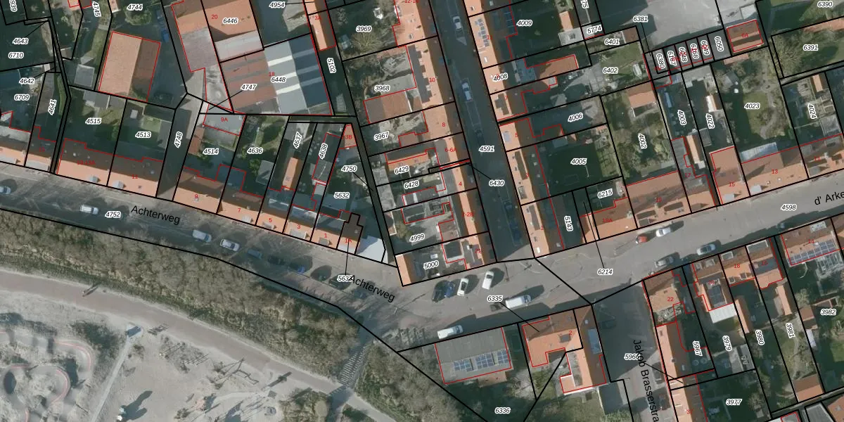 Het adres ligt op het perceel WKP00-B-4999, dat zich in de kadastrale gemeente Westkapelle bevindt. Het perceel is 245 m² groot. Dat is kleiner dan de gemiddelde perceeloppervlakte in Westkapelle, dat op 3391,96 m² ligt. Het grootste perceel in de kadastrale gemeente is 44,9 ha. Het kleinste perceel heeft een oppervlakte van 0 m². Er zijn 3 adressen aanwezig op het perceel. De laatste wijziging in het de Basisregistratie Kadaster (BRK) was op 28-09-2001.