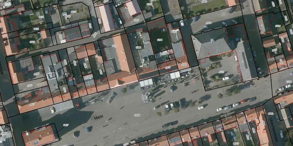 Het perceel waarop Markt 73 staat heeft een oppervlakte van 567 m². Dit is een groot perceel. De perceeloppervlakte wordt geregistreerd door het Kadaster. Gedetailleerde informatie over de maten van dit perceel kunt u vinden in het rapport Kadastrale kaart met maatvoering van Markt 73.