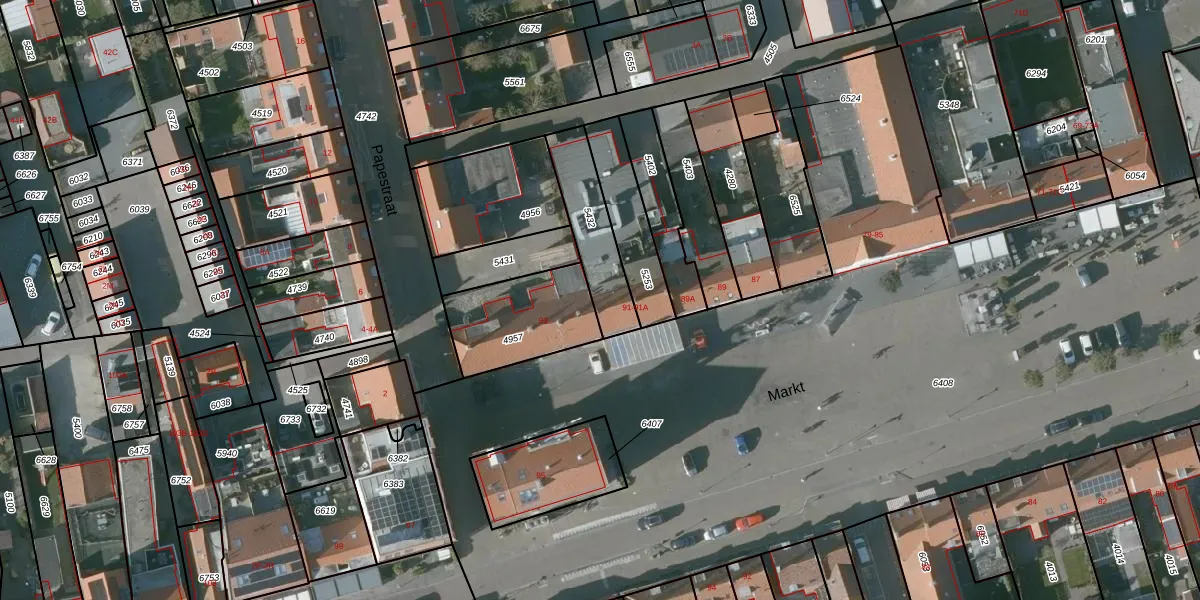 Het perceel waarop Markt 91 staat heeft een oppervlakte van 225 m². Dit is een middelgroot perceel. De perceeloppervlakte wordt geregistreerd door het Kadaster. Gedetailleerde informatie over de maten van dit perceel kunt u vinden in het rapport Kadastrale kaart met maatvoering van Markt 91.