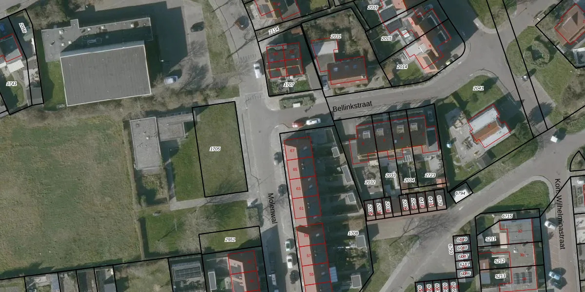 Het perceel waarop Molenwal 67 staat heeft een oppervlakte van 1390 m². Dit is een zeer groot perceel. De perceeloppervlakte wordt geregistreerd door het Kadaster. Gedetailleerde informatie over de maten van dit perceel kunt u vinden in het rapport Kadastrale kaart met maatvoering van Molenwal 67.
