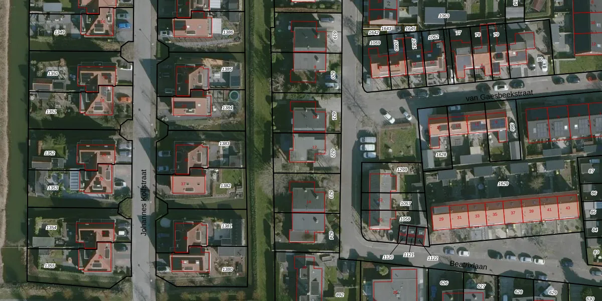 Het perceel waarop Beatrixlaan 12 staat heeft een oppervlakte van 297 m². Dit is een middelgroot perceel. De perceeloppervlakte wordt geregistreerd door het Kadaster. Gedetailleerde informatie over de maten van dit perceel kunt u vinden in het rapport Kadastrale kaart met maatvoering van Beatrixlaan 12.