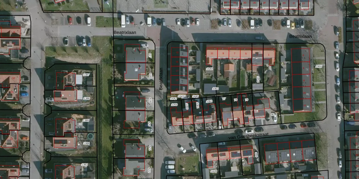 Het perceel waarop Beatrixlaan 21 staat heeft een oppervlakte van 1385 m². Dit is een zeer groot perceel. De perceeloppervlakte wordt geregistreerd door het Kadaster. Gedetailleerde informatie over de maten van dit perceel kunt u vinden in het rapport Kadastrale kaart met maatvoering van Beatrixlaan 21.