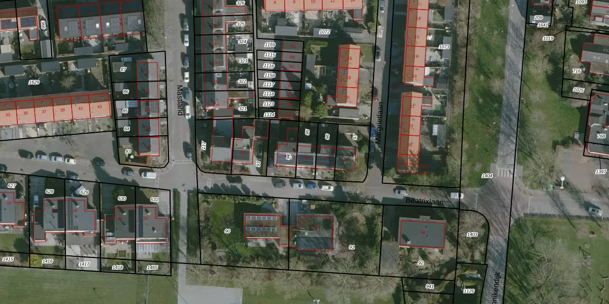 Gebruik de zoekbalk of klik op een perceel voor informatie over de adressen binnen dit perceel.